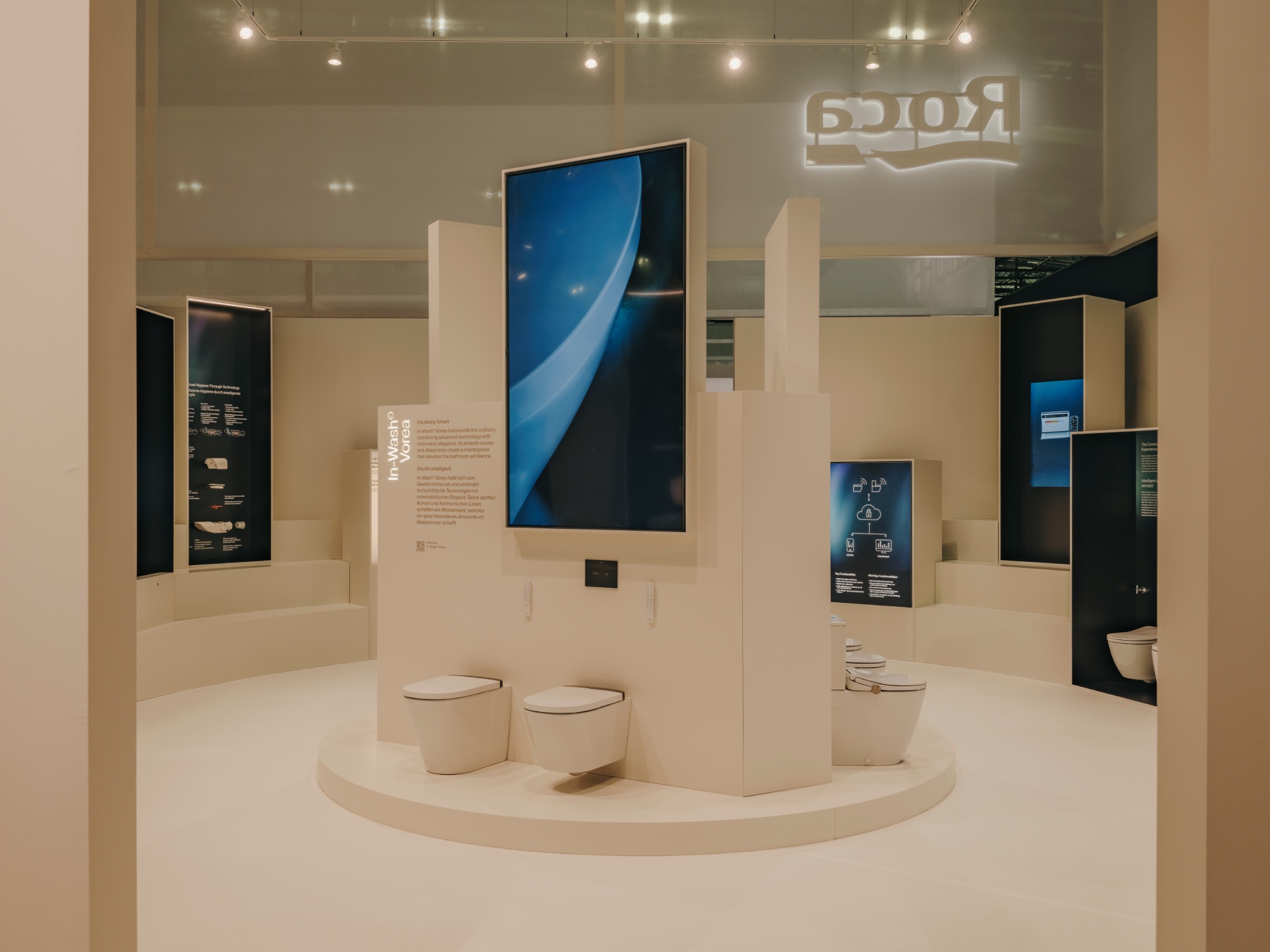 Rooted in tradition yet looking to the future, the stand embodies simplicity, warmth and innovation. Inspired by the interplay of light, materiality and space, the concept reflects Roca’s commitment to design excellence, sustainability and innovation.