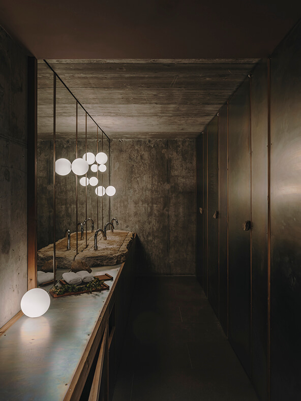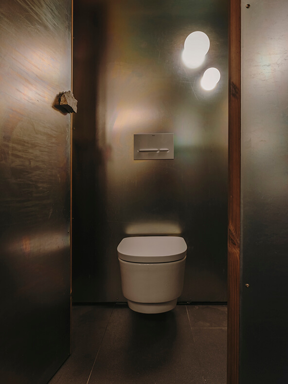 The bathrooms at Esperit Roca mirror the project’s overall philosophy: humble materials elevated through thoughtful design and dramatic lighting. Traditionally hidden elements – rough textures and structural surfaces – are revealed and reimagined as focal points. It is in this raw yet refined environment that Andreu Carulla’s Tura toilet finds its natural place.