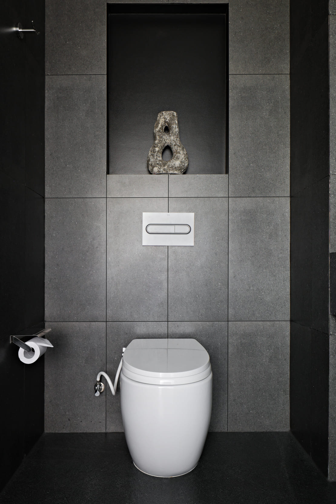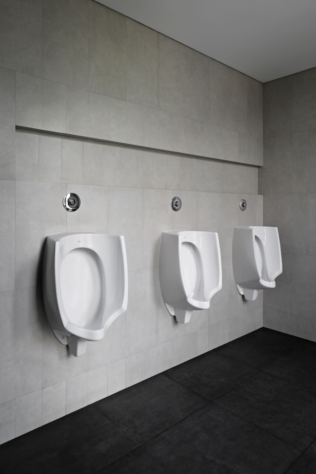In public spaces subject to continuous guest circulation, Mural and Bana urinals ensure efficient, hygienic use — offering durability and easy maintenance without compromising on aesthetics. These solutions, combined with PL1 dual flush plates, help reduce water consumption and contribute to the hotel’s sustainability goals. Their distinct styles allow seamless adaptation to the varying character of each public space, from the understated elegance of the lobby to more vibrant social areas.