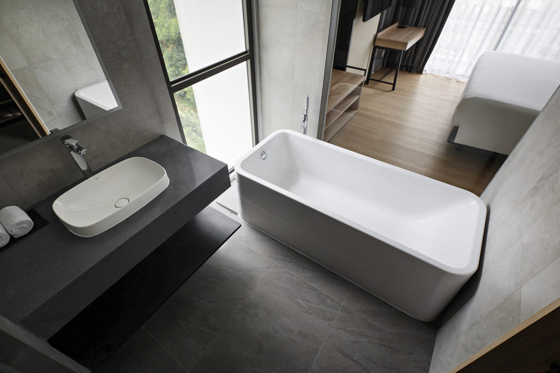 From private suites to shared areas, Roca products were carefully selected to meet the needs of a five-star resort. The suites feature freestanding Element baths, a collection designed by David Chipperfield. Powerful, compact and rational, Element stands out for its pure and distinctive geometry. The simplicity of its lines allows it to adapt with ease to diverse interior design styles.