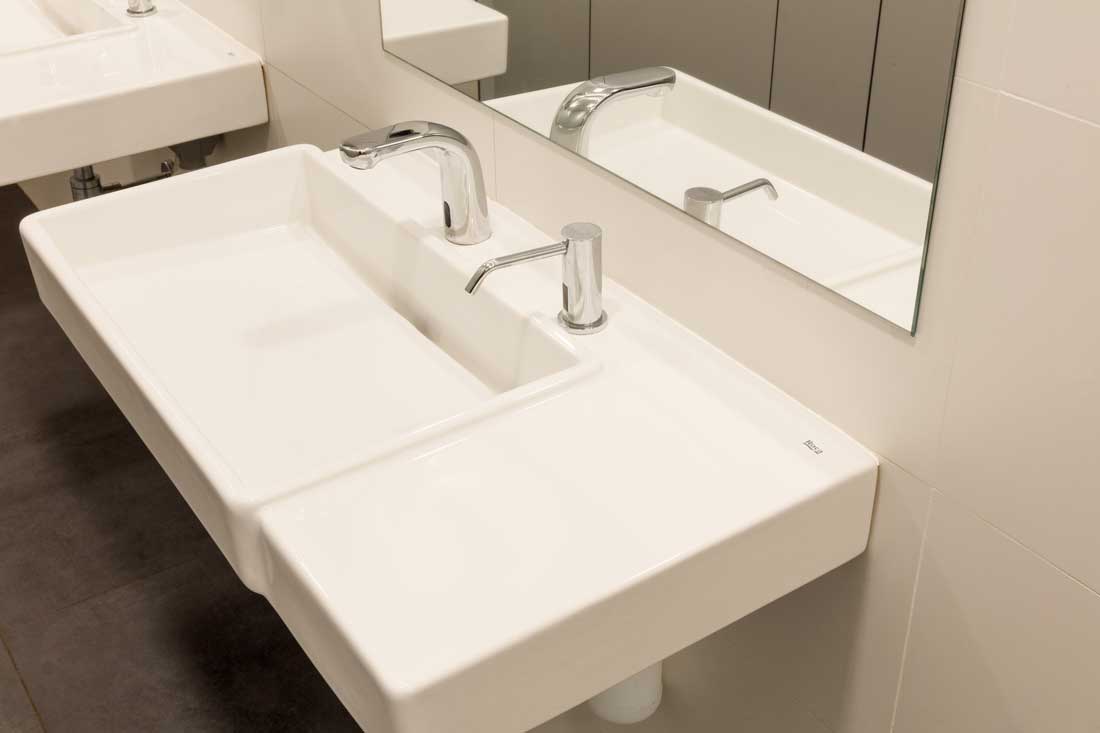 | Roca Products | Tura wall-hung asymmetric left-hand basin,Tura wall-hung basin, L20 electronic basin faucet, Access wall-hung basin, Ona-E electronic soap or hand sanitizer dispenser, Victoria Pro wall-mounted shower mixer, Handle for people with reduced mobility, Tura wall-hung Roca Rimless®. WC, Access wall-hung Roca Rimless® WC, PL10-E One vandal-proof dual flush plate, Terran-N Stonex®. Superslim rectangular shower tray, Duplo WC One built-in structure with dual flush cistern for wall-hung WC, Tura soft-closing seat and cover for toilet, Access WC seat and cover with reinforced hinges, Access Comfort tilting mirror, Public hand dryer with sensor, Access Comfort folding grab bar, Superinox robe hook, Public wall-mounted towel dispenser, Public wall-mounted industrial paper dispenser, Public waste bin 6 liters, Access folding shower seat, Access Comfort 135° angled grab bar, Access drain unit with external overflow and built-in waste pipe, Luna mirror |