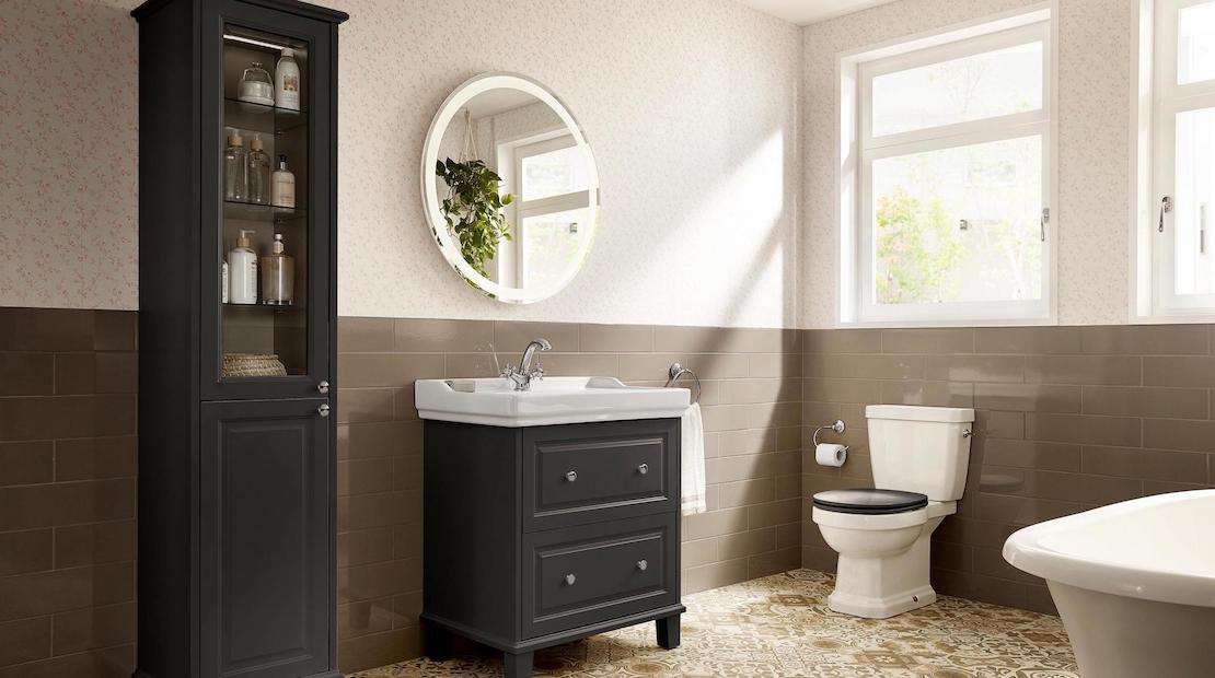 If it’s a vintage aesthetic you’re after, the tall bathroom cabinets from the Carmen collection, available in Satin Dark Grey and Satin White finishes, will be sure to satisfy. The upper section features a glass door and interior LED lighting that will not only help you locate your bathroom essentials, but will look great too!