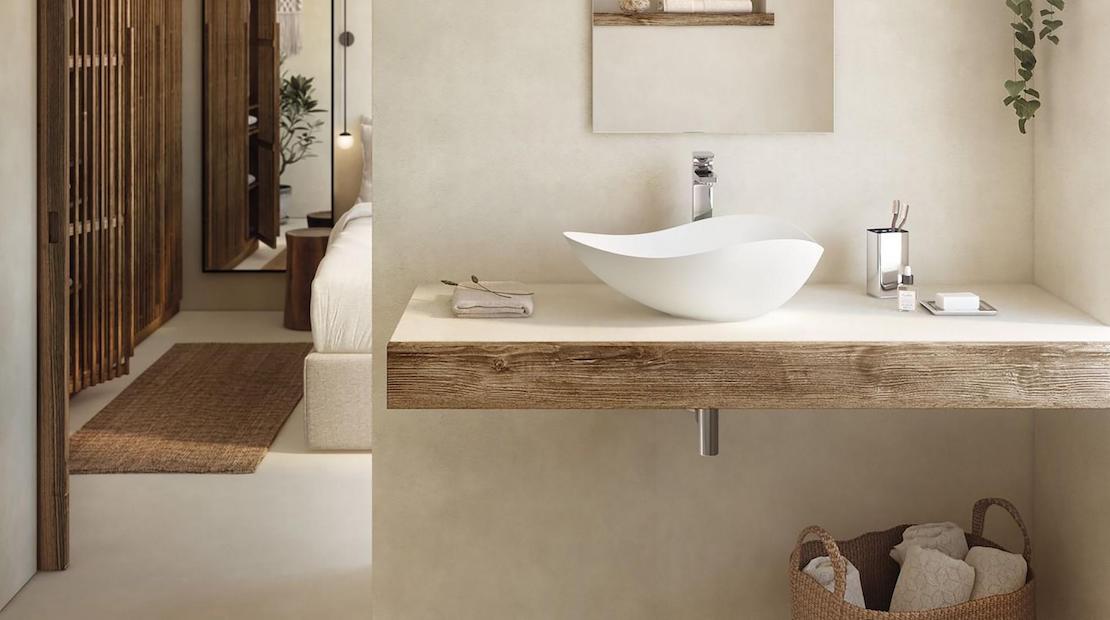 And lastly, the organic Ohtake basins will bring a focal point to any bathroom. Available in two sizes and a range of colours, by combining the Ohtake with a wooden countertop; either the Savana or a custom-made shelf (fourth picture below), you can create a beautiful nature-inspired space.