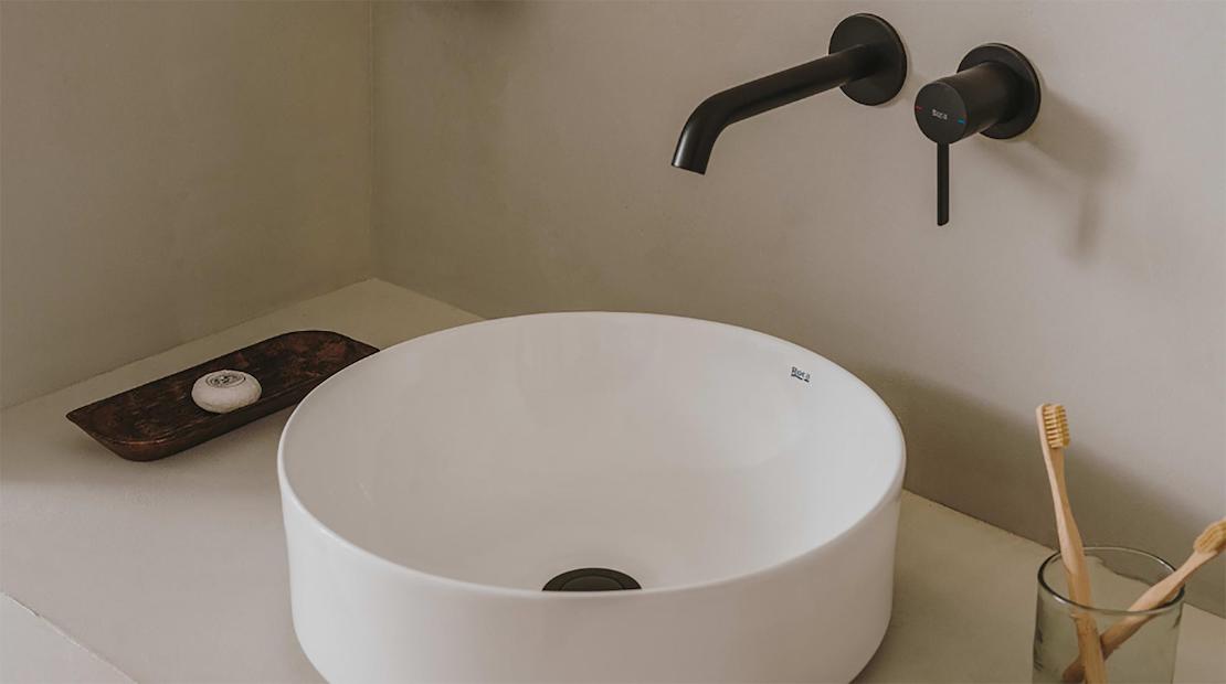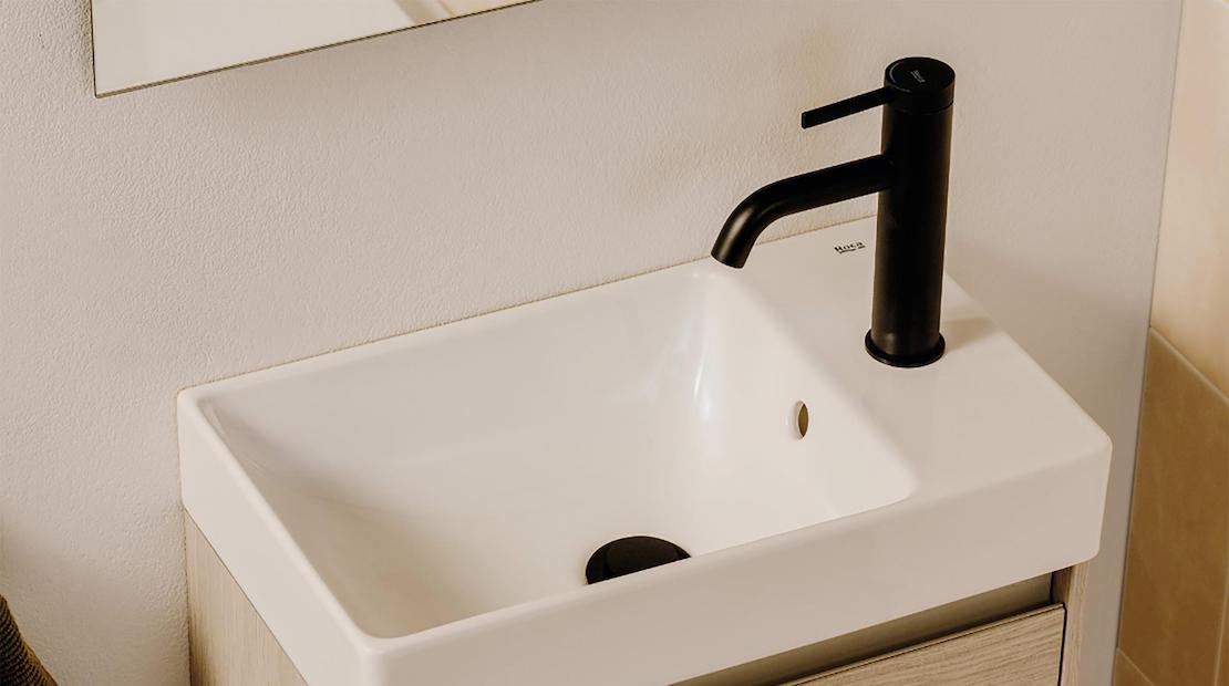 Whether you want on-trend black bathroom taps to match a contemporary design scheme, or wall mounted taps for a countertop basin, there are a few factors you need to consider before choosing new basin taps, including style, colour and functionality. Cold Start technology from Roca stops the boiler from kicking in unnecessarily – a great choice for young families whilst also helping to save energy. Some taps such as Cala have aerators and flow limiters which help with softening the flow of water and reducing water consumption without compromising on the feeling of pressure. On top of this you’ll want to pick a style and colour you’re going to love, and that works harmoniously with the basin, so there’s plenty to think about. Here’s some inspiration to get you started…