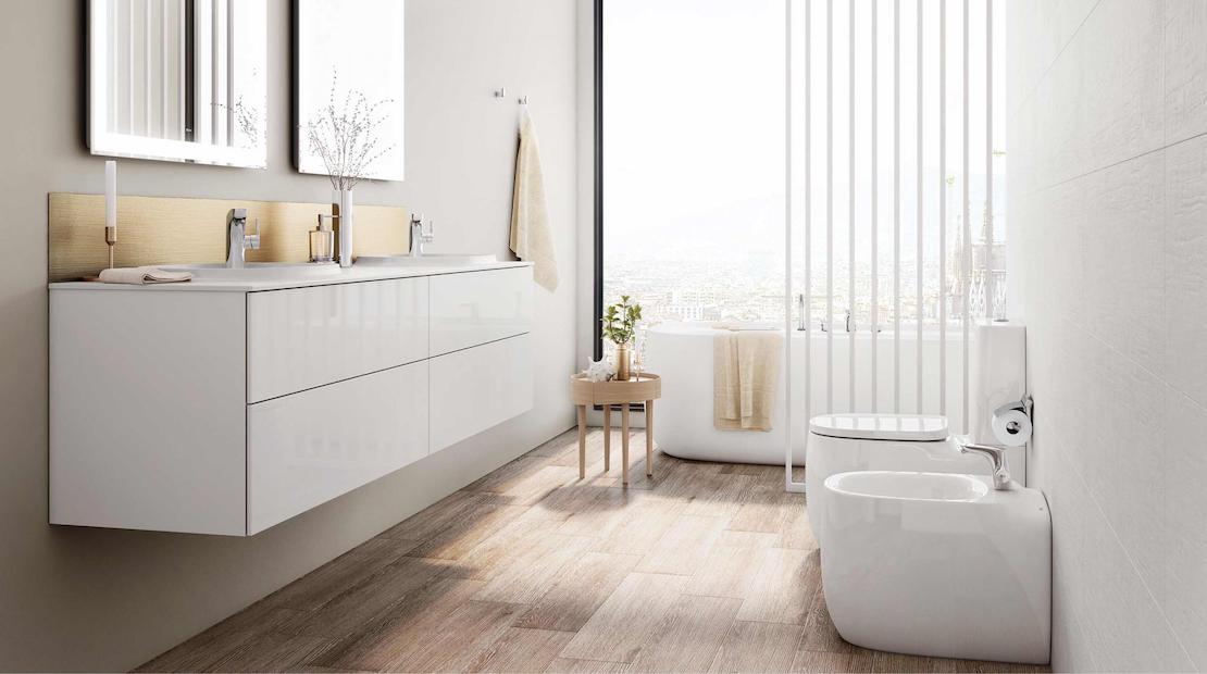 Including Bluetooth® speakers and internal lighting, the Stratum-N vanity unit is a perfect example of how technology can enhance a bathroom. Designed for contemporary spaces, it is available in three sizes, with one or two integrated basins, and in two finishes.