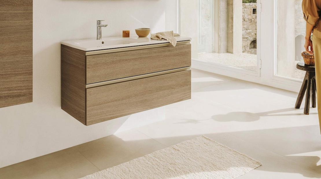 The Lander unit features maximum storage capacity; the drawers are larger than usual thanks to the Lander’s floor-standing design. These bathroom vanities all feature an integrated basin, and are available in three dimensions and three finishes.